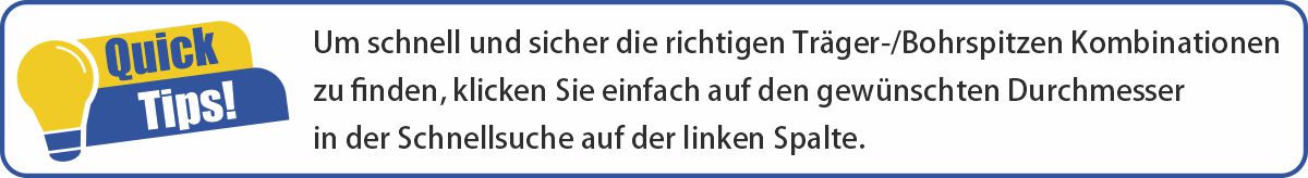 Achten Sie bitte auf die Träger/Bohrspitzen-Kombinationen!