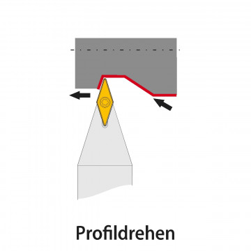 ACHTUNG! Bei Aluminium mit einem niedrigen Siliziumgehalt sowie weichen Materialien mit langer Spanbildung, benötigen Sie die VCGT-Wendeschneidplatte mit positivem Spanwinkel.