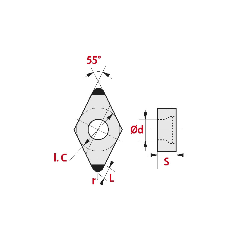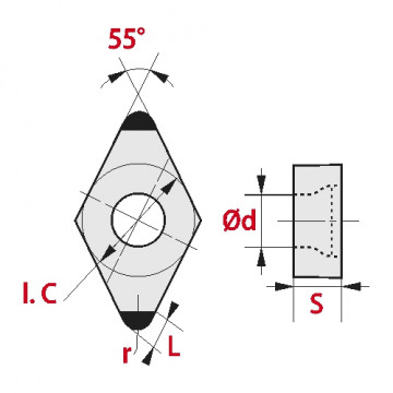 DNGA 150604-2N RTC20T 1661596 12,7 6,35 0,4 5,16 2,2 Hartdrehen Vc=50-150m/min f=0,03-0,15 mm/U