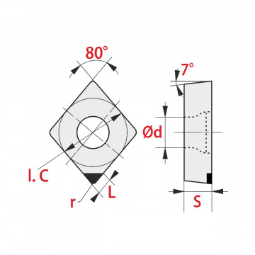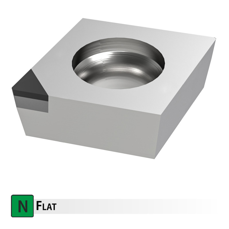 ACHTUNG! Bei Aluminium mit einem niedrigen Siliziumgehalt sowie weichen Materialien mit langer Spanbildung, benötigen Sie die CCGT-Wendeschneidplatte mit positivem Spanwinkel.