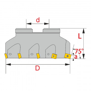 Mit diesem 75° Planfräser können Sie die beim Eckfräsen unbenutzten Schneidekanten verwenden.