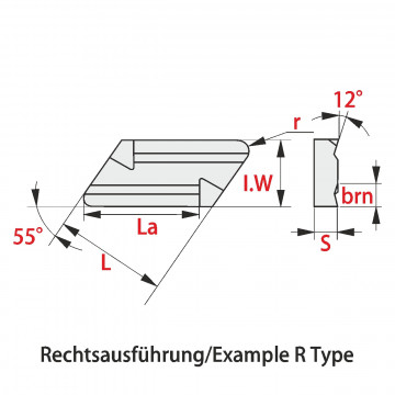 KNUX 160405 R11 RT250 1771152 0,5 16 2,2 16,15 9,525 4,76 Steel, Medium and Roughing Vc= 120-220m/min f=0,1-0,3 mm/U
