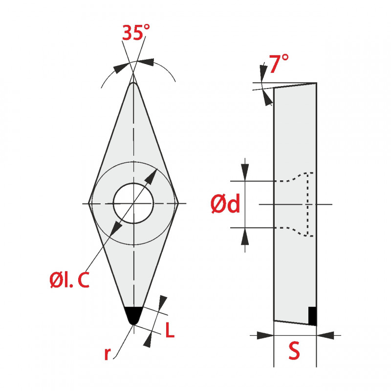RTD10: Polycrystalline diamond for high-speed machining of aluminum up to 12% Si, non-ferrous metals and plastic |