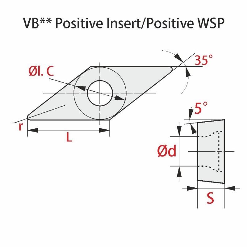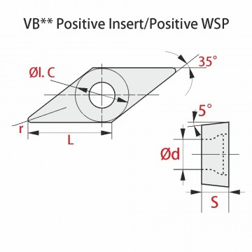 VBMT 160408-MM RT255M 1771452 0,8 16,5 9,525 4,76 4,4 Stainless Steel, medium Vc=110-180m/min f=0,15-0,35 mm/U