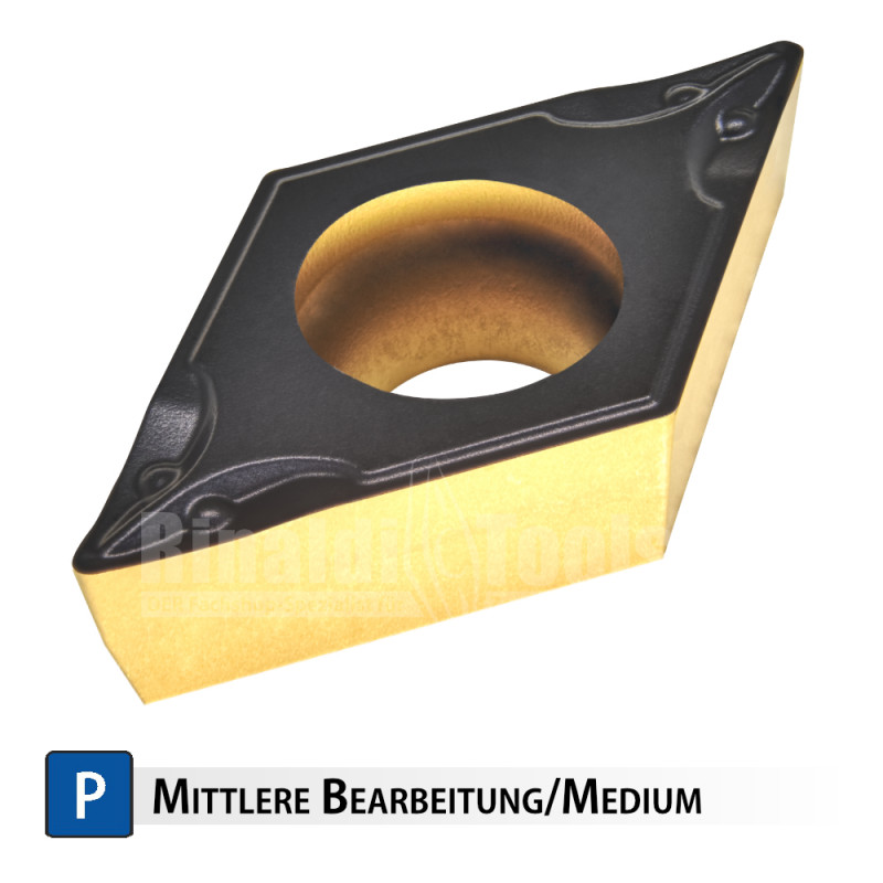 DCMT 11T304-PM RT250+ 1771641 0,4 11,6 9,525 3,97 4,4 Steel, medium Vc=120-250m/min f=0,05-0,15 mm/U