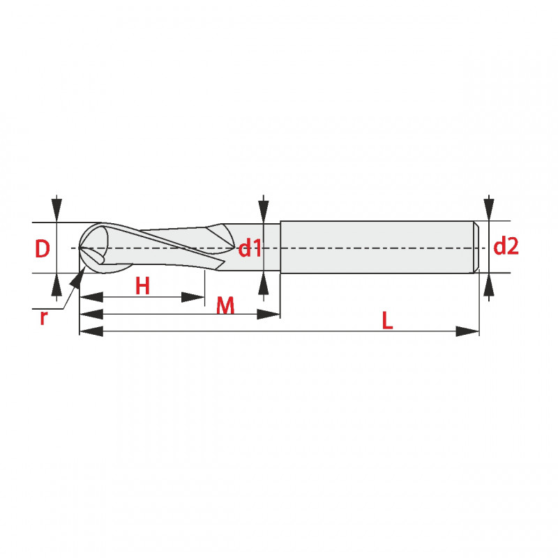 | Mill Typ | Solid Carbide Ball Nosed Hard Cutter until 68 HRC Long Version |